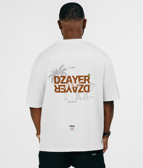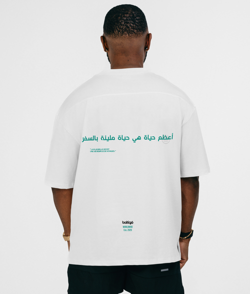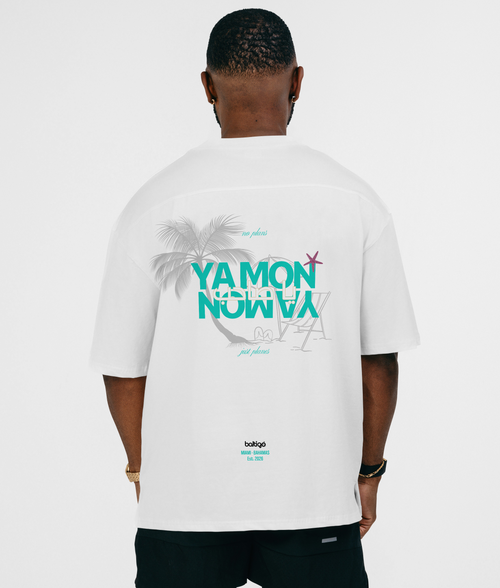 T-shirt unisexe oversize en coton épais avec col rond et épaules tombantes, offrant une coupe moderne et confortable.